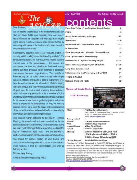 July - Sept’2018 The Ashlar ; Vol.XIV Issue II