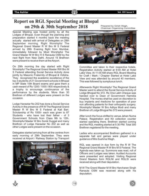 Activity in the presence of R W The Regional Grand Worshipful Master W Bro Aditya Modi and many