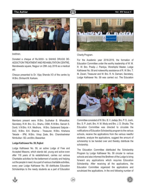 W.Bro. Shrikant M. Karkare. Lodge Kathiawar No. 59 was carried out. The Education
