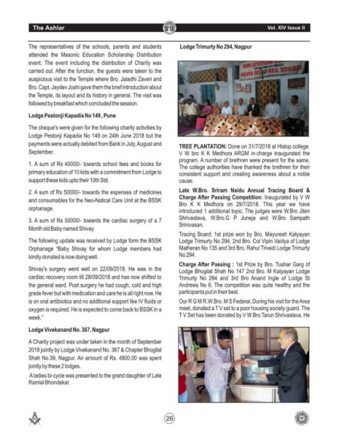 The representatives of the schools, parents and students Lodge Trimurty No 294, Nagpur