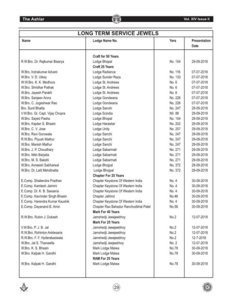 W.Bro. Nitin Barjatia           Lodge Sabarmati                    No. 271    29-09-2018