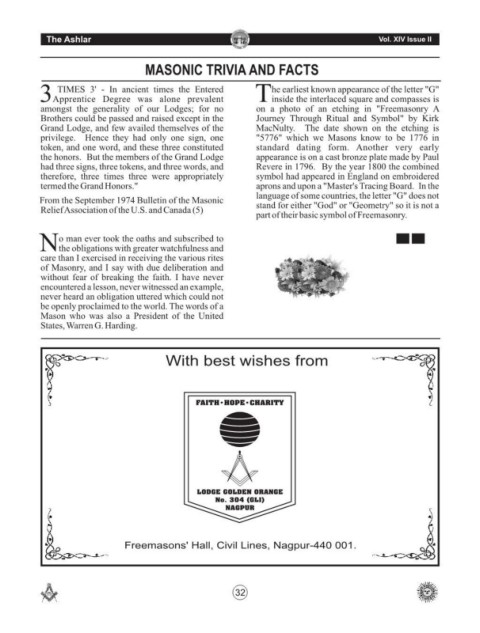 privilege.    Hence  they  had  only  one  sign,  one   "5776"  which  we  Masons  know  to  be  1776  in