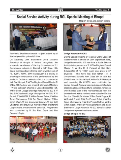 the Lodges of Bhopal and Vidisha. During Special Meeting of Regional Grand Lodge of
