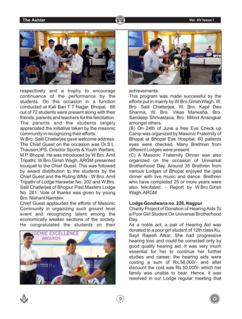 by award distribution to the students by the various Lodges of Bhopal enjoyed the gala