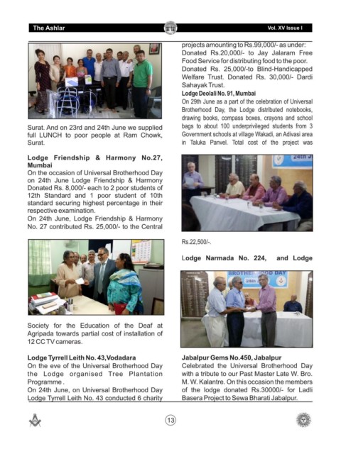 On 24th June, on Universal Brotherhood Day of the lodge donated Rs.30000/- for Ladli