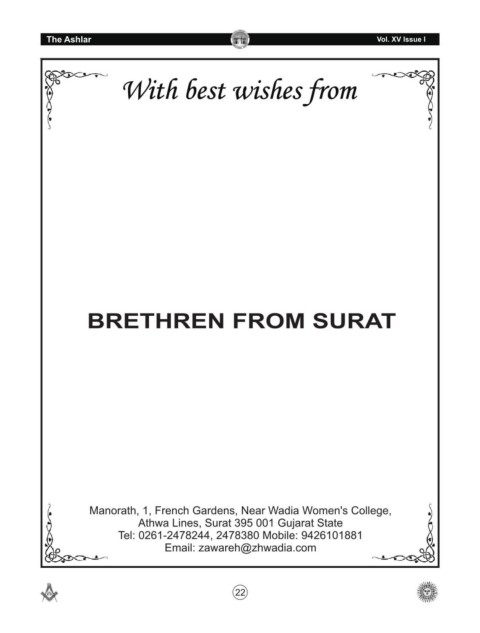 N A L G I O G E RAND LODGE The Ashlar R Vol. XV Issue I 22