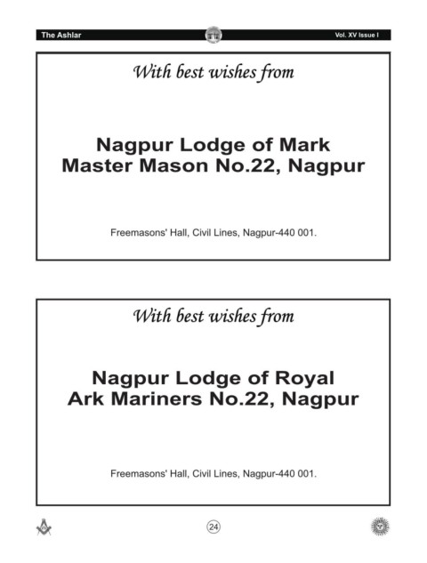 N A L G I O G E RAND LODGE The Ashlar R Vol. XV Issue I 24