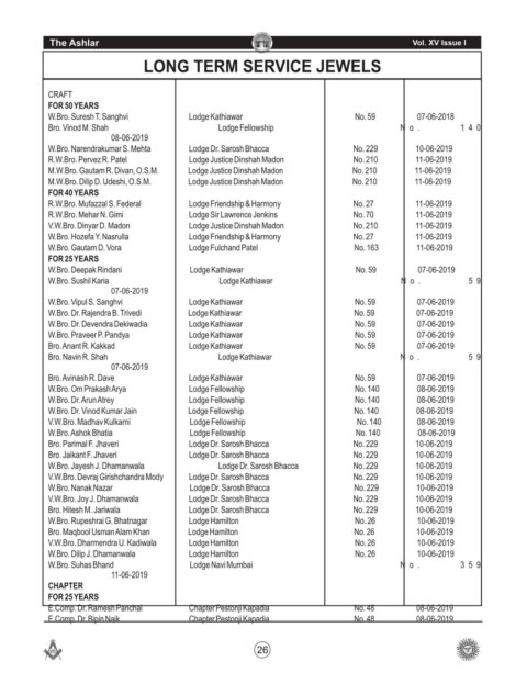 Bro. Vinod M. Shah                Lodge Fellowship                    N o .       1 4 0