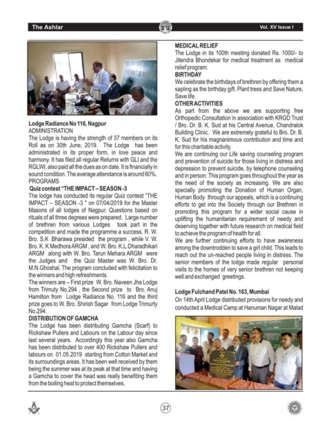 Hamilton from   Lodge Radiance No. 116 and the third   On 14th April Lodge distributed provisions for needy and