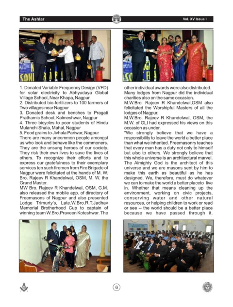 Freemasons of Nagpur and also presented conserving water and other natural