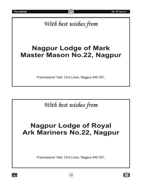 N A L G R I O G E AND LODGE The Ashlar R Vol. XV Issue II 24