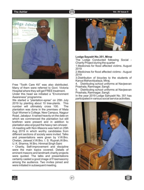 Awareness” programme. In the year 2019 Lodge Sahyadri No. 351 has