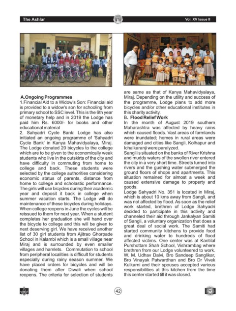 of monetary help and in 2019 the Lodge has B. Flood Relief Work
