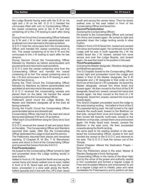 in front of S W, faced east and swung the censer Free and Accepted Masons and empowered to act