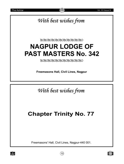 N A L G R I O G E AND LODGE The Ashlar R Vol. XV Issue III 10