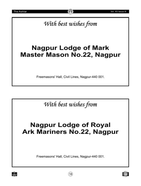 N A L G R I O G E AND LODGE The Ashlar R Vol. XV Issue III 18