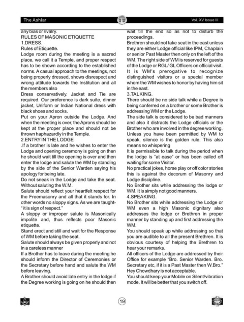 2.ENTRY IN THE LODGE speak, silence is the golden rule. This also