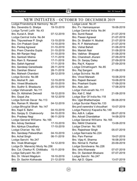 Bro. Prem Chandra Gupta       31-10-2019      Bro. Manish Nair              31-08-2019