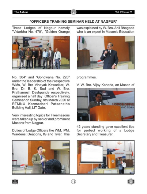 Three Lodges of Nagpur namely was explained by W. Bro. Anil Bhagade
