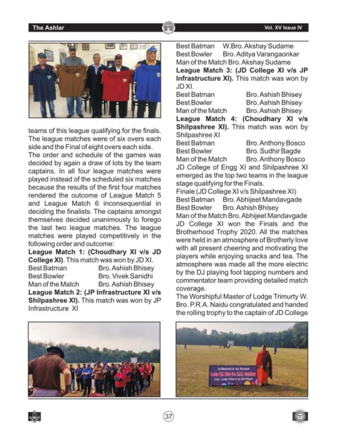 deciding the finalists. The captains amongst Best Bowler Bro. Ashish Bhisey