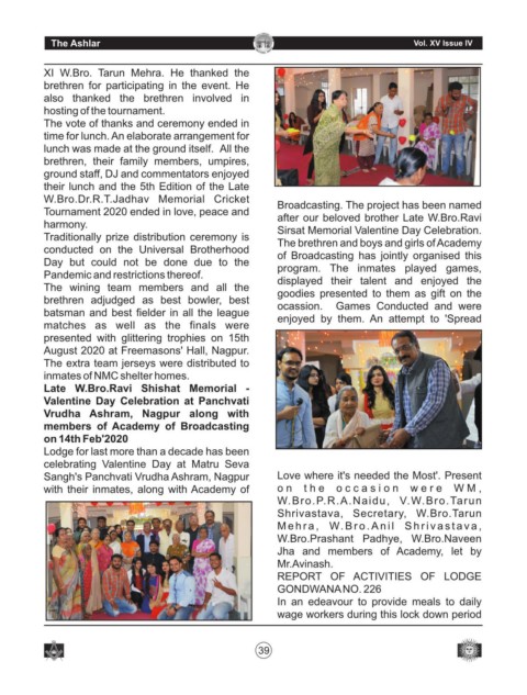 Tournament 2020 ended in love, peace and after our beloved brother Late W.Bro.Ravi