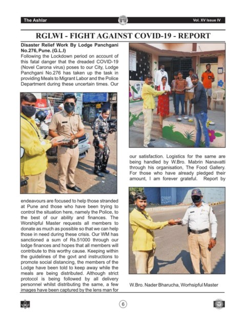 personnel whilst distributing the same, a few W.Bro. Nader Bharucha, Worhsipful Master