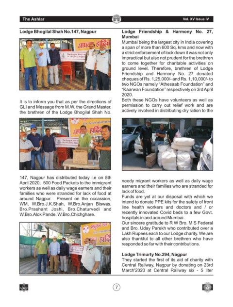 the brethren of the Lodge Bhogilal Shah No. actively involved in distributing dry ration to the