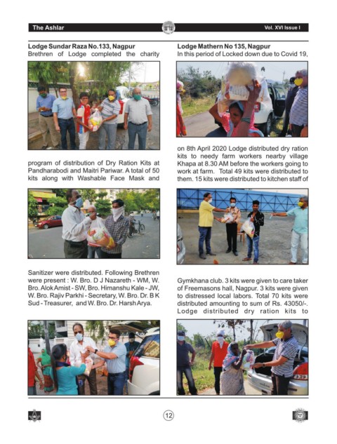 W. Bro. Rajiv Parkhi - Secretary, W. Bro. Dr. B K to distressed local labors. Total 70 kits were