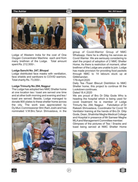 Lodge Trimurty No.294, Nagpur Shelter home, this project to continue till the