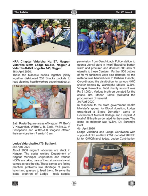 Vidarbha RAM Lodge No.145, Nagpur            wala” and procured and donated 500 sets of