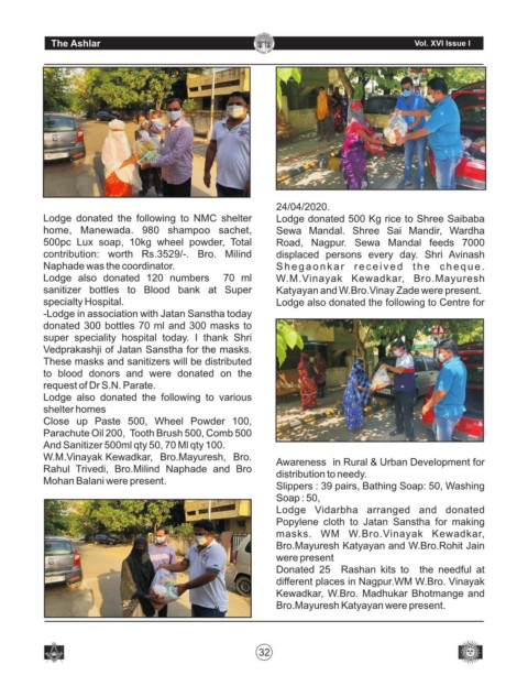 contribution:  worth  Rs.3529/-.  Bro.  Milind   displaced  persons  every  day.  Shri  Avinash