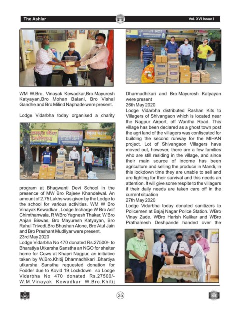the  school  for  various  activities.  WM  W  Bro   Lodge  Vidarbha  today  donated  sanitizers  to