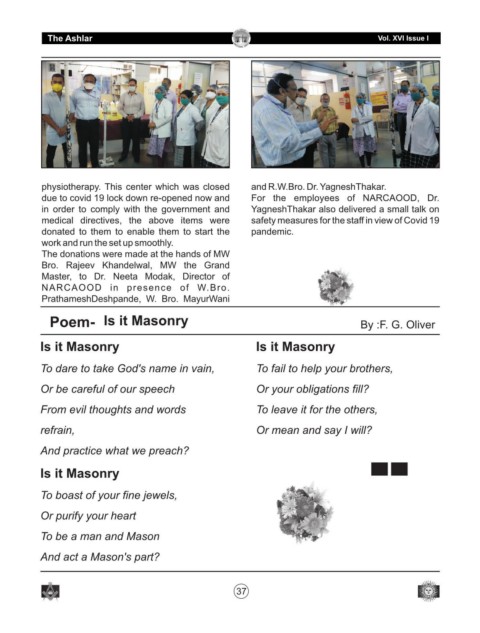 physiotherapy. This center which was closed   and R.W.Bro. Dr. YagneshThakar.