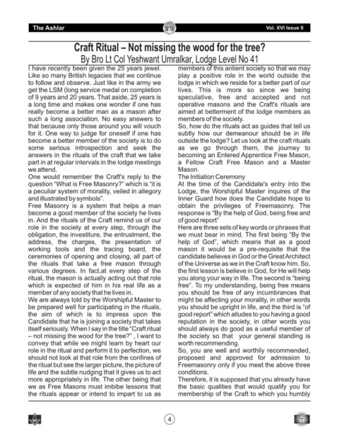 By Bro Lt Col Yeshwant Umralkar, Lodge Level No 41