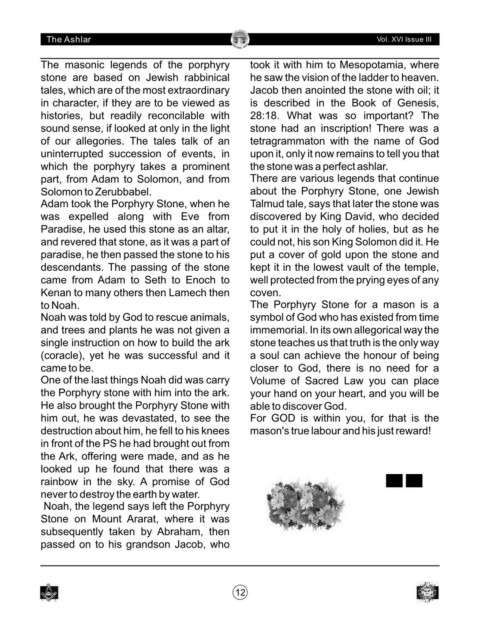 to Noah. The Porphyry Stone for a mason is a