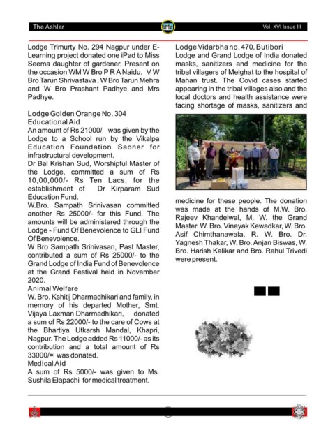amounts will be administered through the Master. W. Bro. Vinayak Kewadkar, W. Bro.