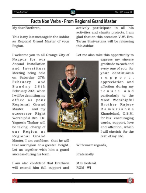 This is my last message in the Ashlar glad that on this occasion V.W. Bro.