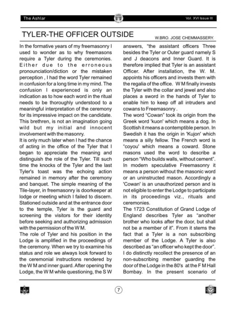 Lodge is amplified in the proceedings of member of the Lodge. A Tyler is also