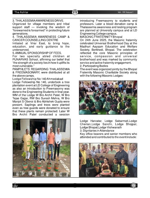 3. THALASSEMIA AWARENESS DRIVE. introducing Freemasonry to students and