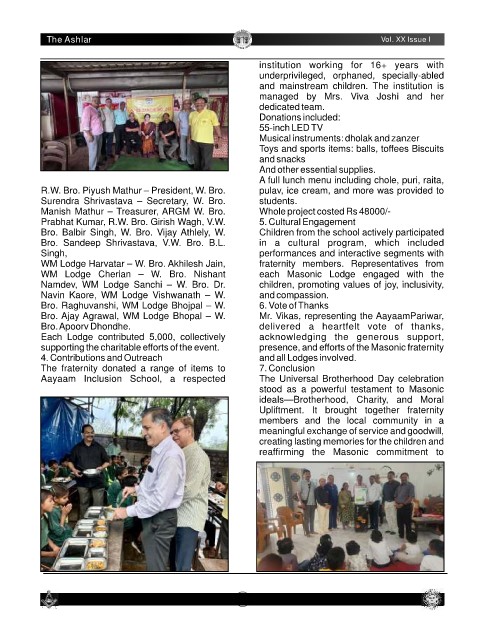 Namdev, WM Lodge Sanchi – W. Bro. Dr. children, promoting values of joy, inclusivity,