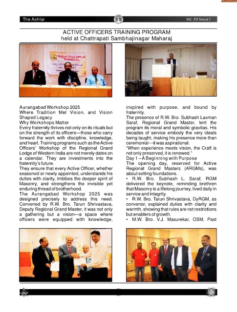 duties with clarity, imbibes the deeper spirit of • R.W. Bro. Subhash L. Saraf, RGM