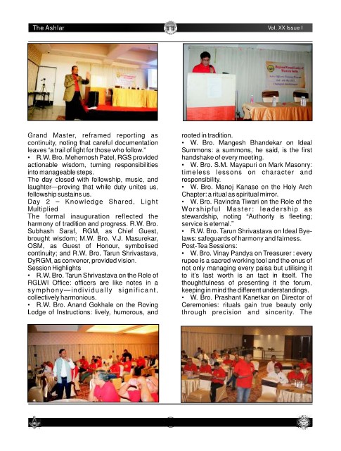 continuity; and R.W. Bro. Tarun Shrivastava, • W. Bro. Vinay Pandya on Treasurer : every