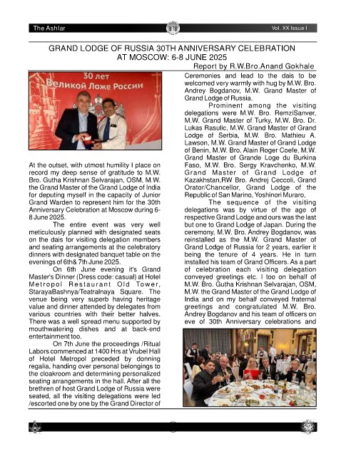 GRAND LODGE OF RUSSIA 30TH ANNIVERSARY CELEBRATION