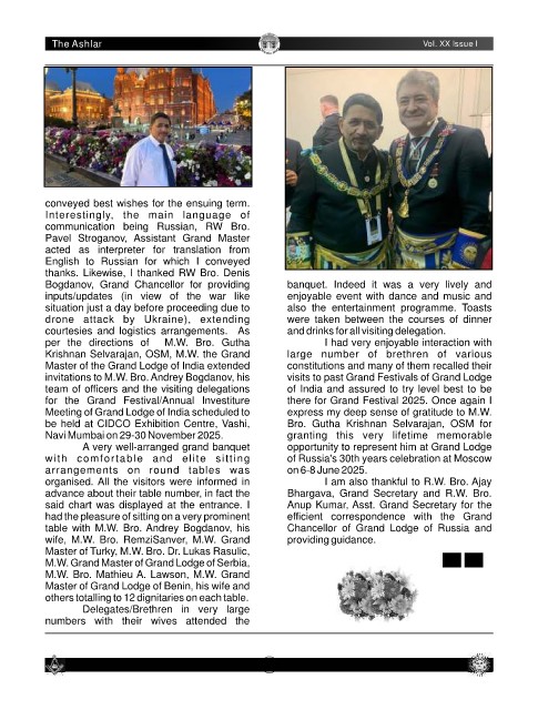invitations to M.W. Bro. Andrey Bogdanov, his visits to past Grand Festivals of Grand Lodge