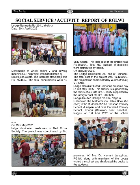 machines 5. The project was coordinated by The Lodge distributed 300 nos of Raincoat.