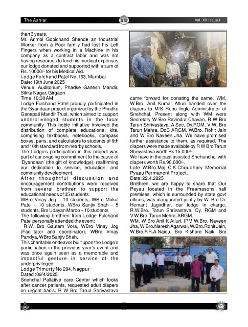 underprivileged students in the local Secretary W Bro Ravindra Chavan, R W Bro