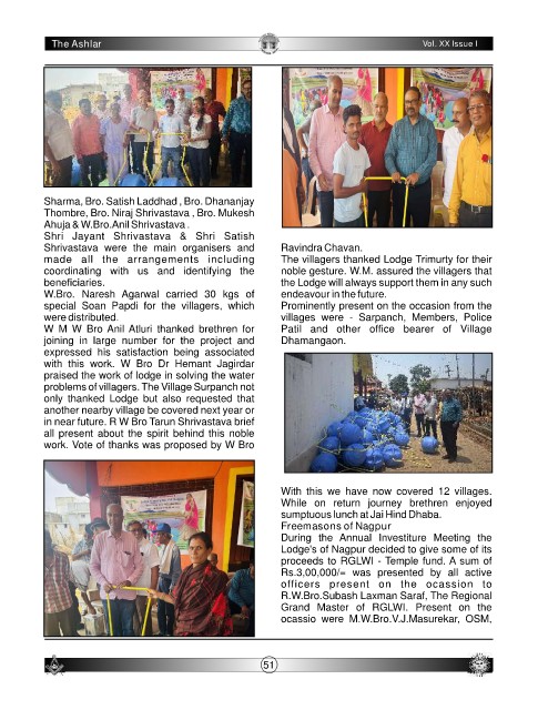 made all the arrangements including The villagers thanked Lodge Trimurty for their