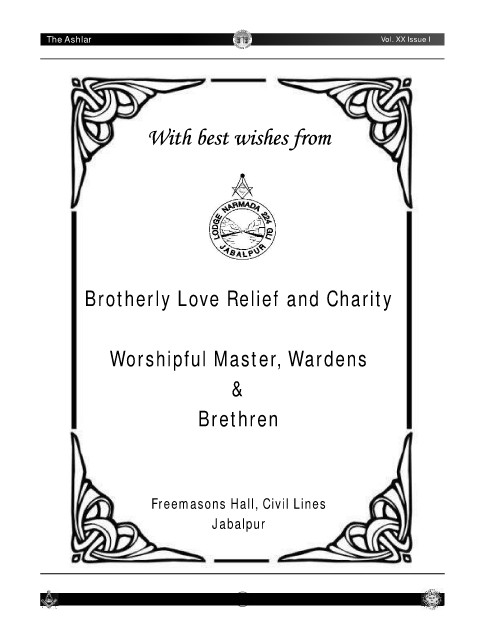 N A L G R I O G E AND LODGE Covid-19 R Vol. XX Issue I Bulletin-I The Ashlar Brotherly Love Relief and Charity Worshipful Master, Wardens & Brethren Freemasons Hall, Civil Lines Jabalpur 4