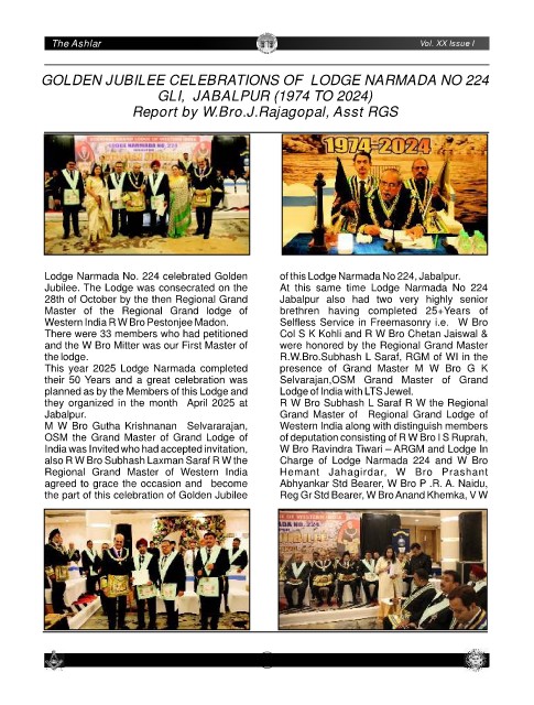 GOLDEN JUBILEE CELEBRATIONS OF LODGE NARMADA NO 224
