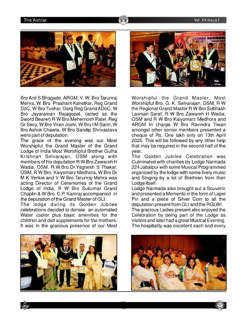 Lodge of India, R W Bro Sukumar Grand Lodge Narmada also brought out a Souvenir